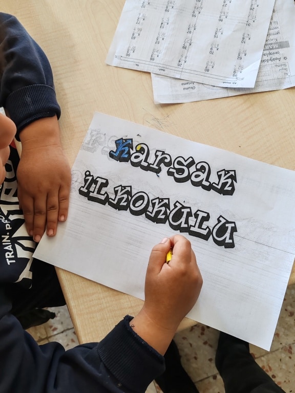 Karsak İlkokulu öğrencileri tarafından Nisan ayında "Dilimizin Zenginlikleri" projesi kapsamında grafiti (duvar yazısı) çalışması yapılmıştır.